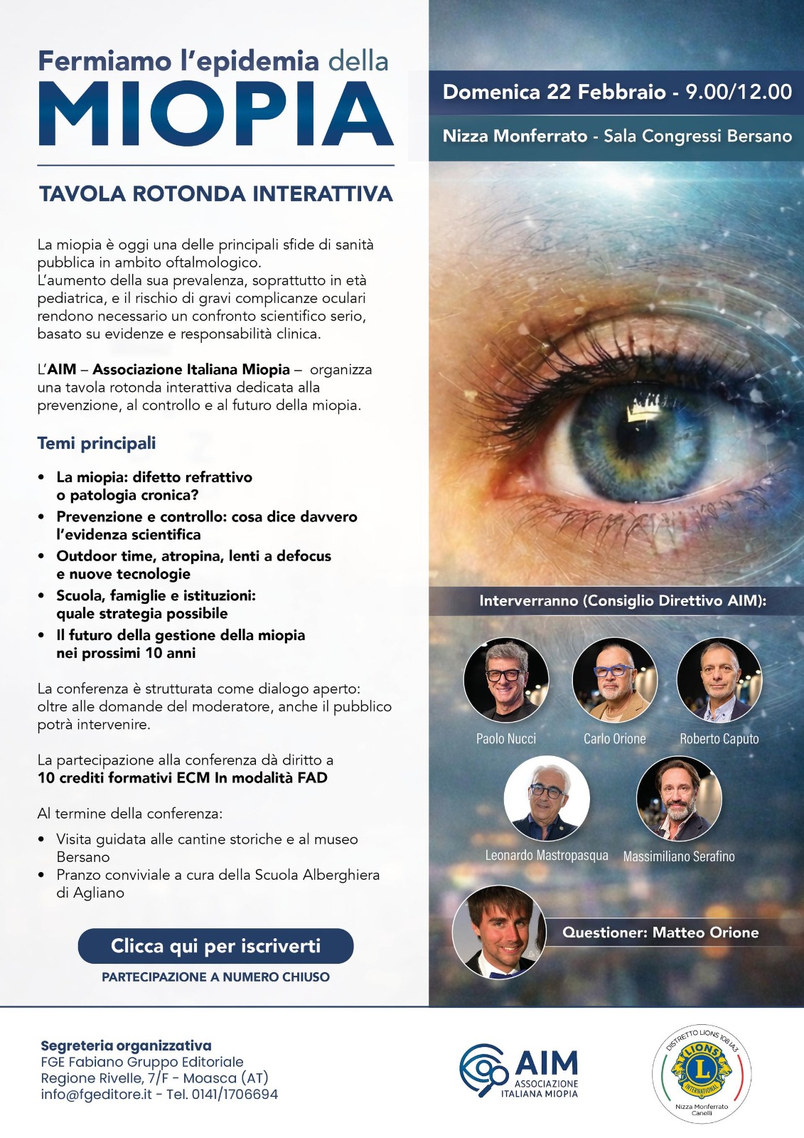 L’AIM – Associazione Italiana Miopia – organizza una tavola rotonda interattiva dedicata alla prevenzione, al controllo e al futuro della miopia.